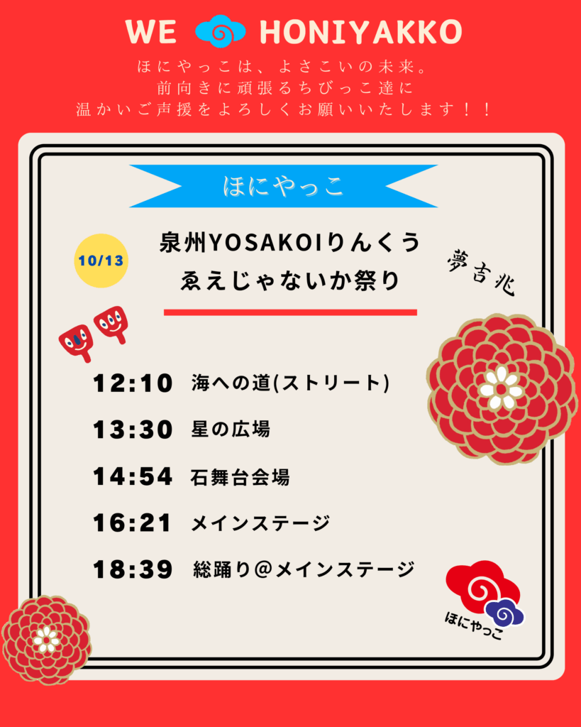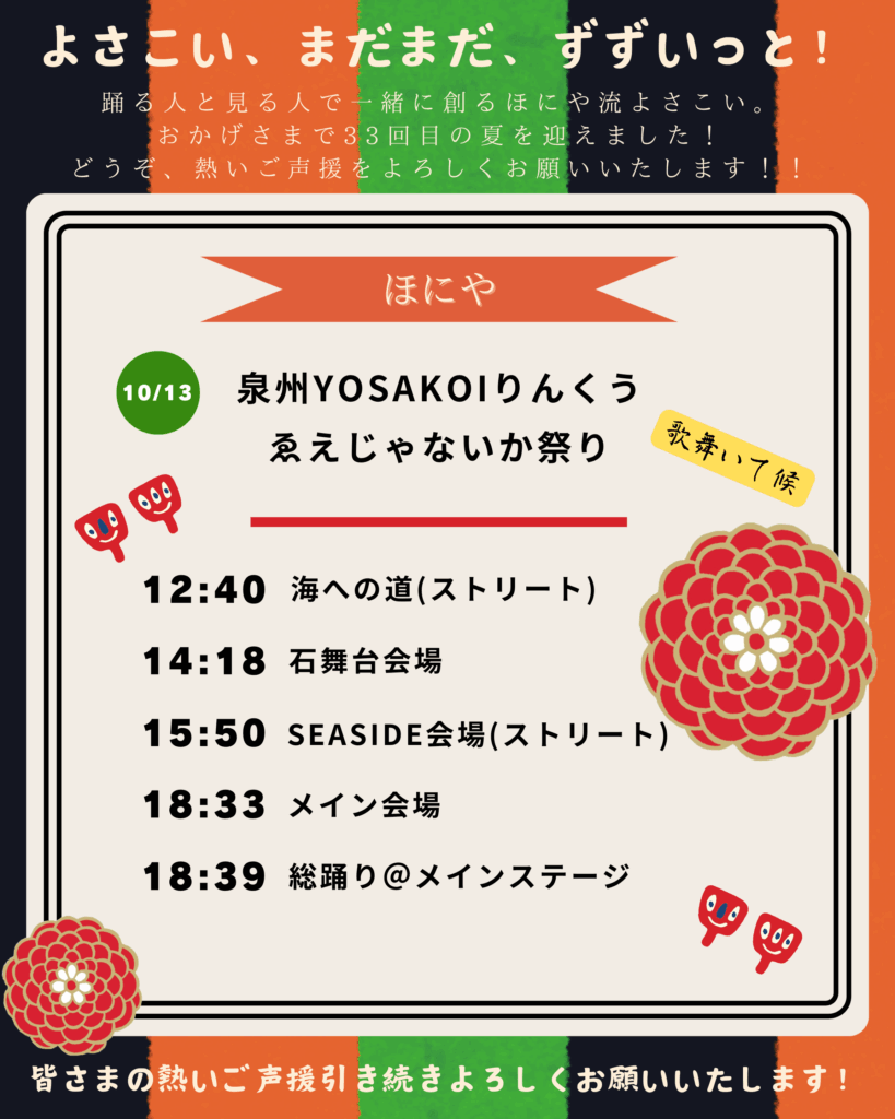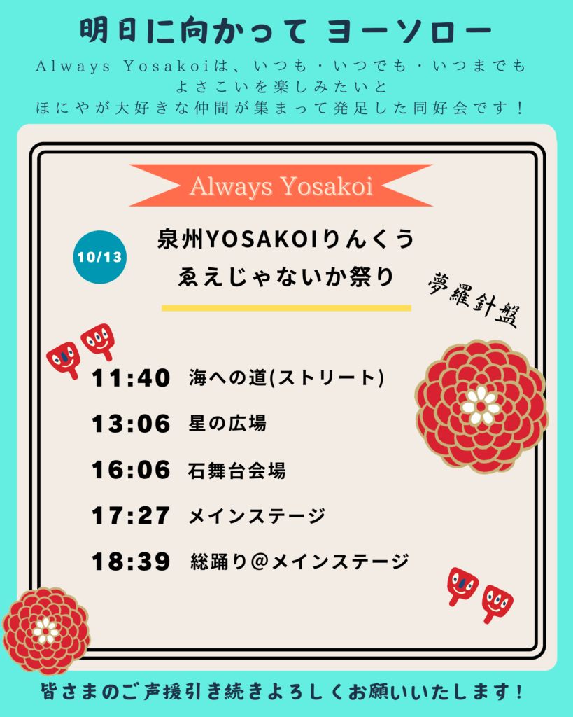 10月13日(月・祝)に開催される『泉州YOSAKOIゑぇじゃないか祭り』。