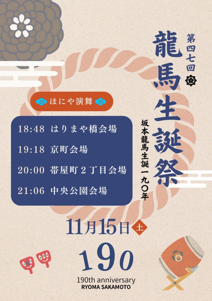 11月15日(土)に開催される龍馬生誕祭に「ほにや」が参加します。